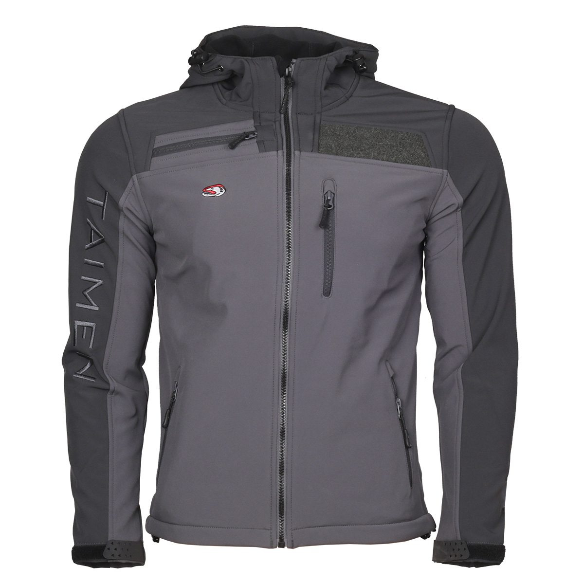Wędkarska kurtka softshellowa Taimen Arigiin. Zaprojektowana pod kątem użytkowania podczas wypadów wędkarskich. Gotowa do zamocowania akcesoriów wędkarskich, patki na muchy, na plecach dodatkowo D-ring do zawieszenia podbieraka. Regulowany kaptur chroniący przed złymi warunkami atmosferycznymi. Cztery obszerne kieszenie sprawiają, że zmieścisz w niej wszystko co potrzebne jest podczas połowów. Materiał z którego wykonano kurtę to miękki, przyjemny w dotyku, od wewnątrz wyściełany polarem softshell. Kurtka zabezpiecza przed wiatrem i krótkotrwałym deszczem. Mankiety w kurtce są regulowane, po zaciśnięciu ograniczają przedostawanie się wody do rękawów.