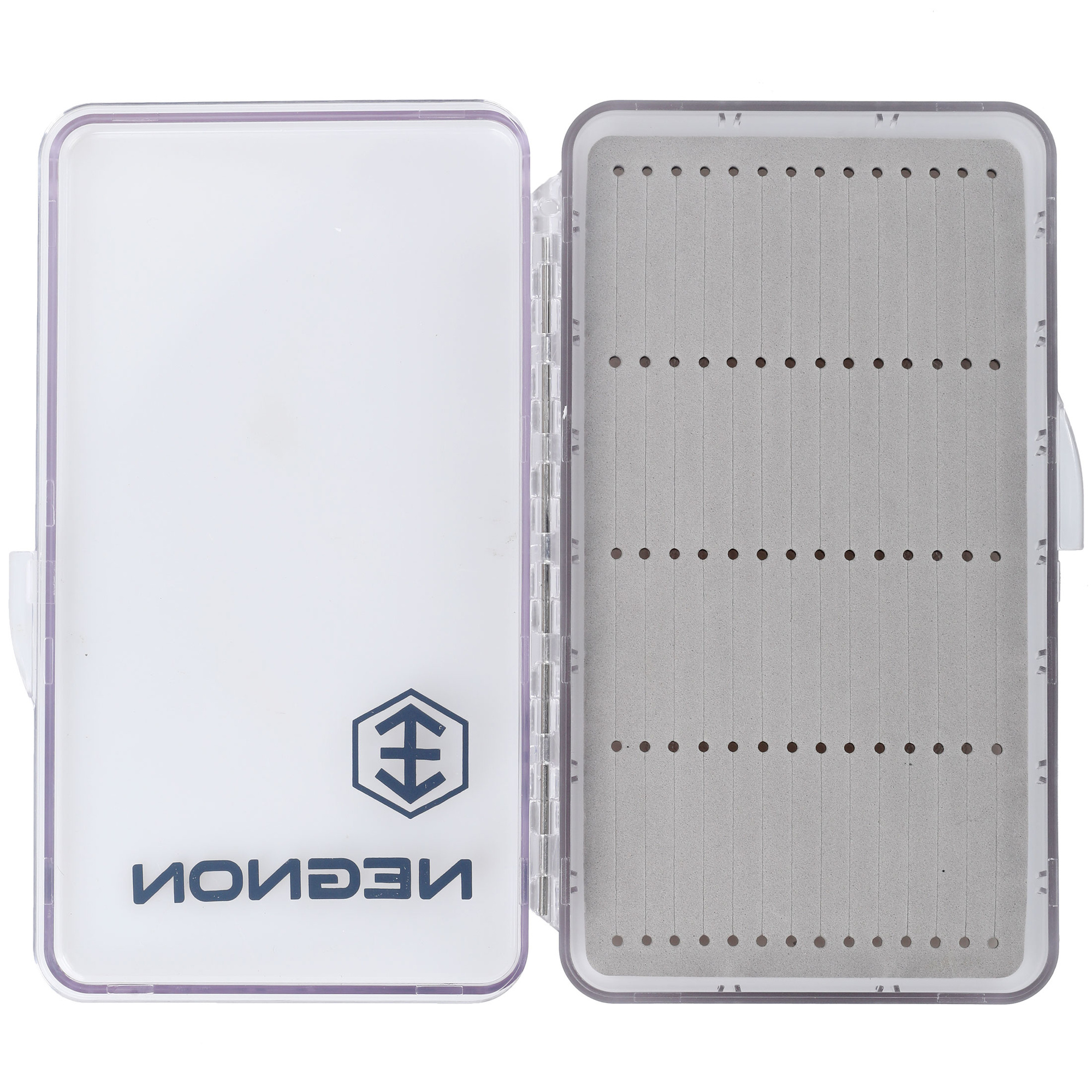 Negnon Clear Fly Box - Large to proste i poręczne pudełko na muchy. Nieco grubsza konstrukcja pomieści dowolny rodzaj much. Przezroczysta obudowa pozwala na szybki wgląd w zawartość, bez konieczności otwierania pudełka. Solidny zawias i proste zamknięcie na zatrzask zapewniają trwałość i łatwość użytkowania. Wewnątrz znajduje się piankowa wkładka do wpinania much, z wycięciami dostępnymi w różnych wariantach. Wybierz wariant, który najlepiej odpowiada Twoim potrzebom.
